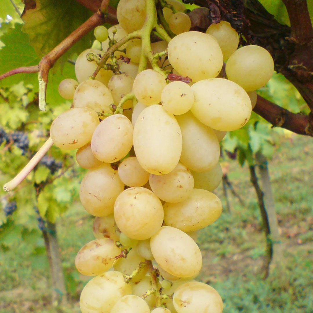 Grozd je veliki, mase od 250 do 550 grama, izdužen, najčešće razgranat, rastresit ili srednje zbijen. Ponekad grozdovi mogu biti teški i preko 1 kg. Drška grozda je dugačka. Bobice su blago izdužene, žuto-zelene boje, sa osunčane strane ćilibarne. Pokožica je debela i čini cjelinu sa pulpom, koja je čvrsta i hrskava.