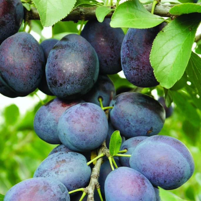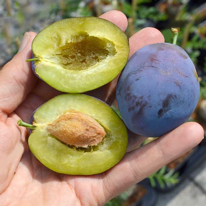 Plod je srednji do veliki, 35–42 mm, > 40 g, eliptični do ovalni. Kožica je tamnoplava do crnoplava, gust voskasti premaz, jasno vidljivi lenticeli. Meso je žuto, čvrsto, vrlo sočno. Koštica je poluodvojiva od mesa. Osetljivost na pucanje je niska. Skladištenje je varijabilno; u nekim godinama može doći do skupljanja ploda u vratu.